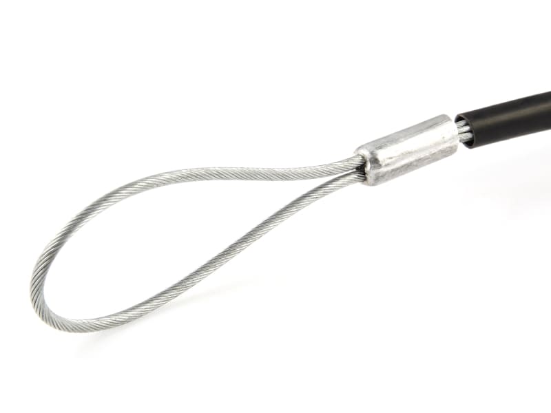 Der Kabelstrumpf ist an beiden Enden offen mit einer seitlich versetzten Seilschlaufe aus Stahlseil.