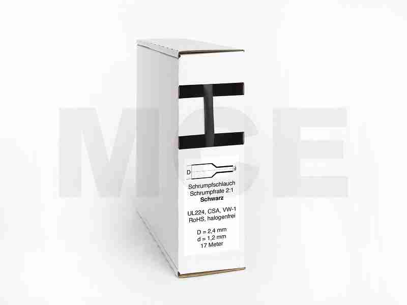 Schrumpfschlauch Box 17m Schwarz 2,4mm / 1,2mm