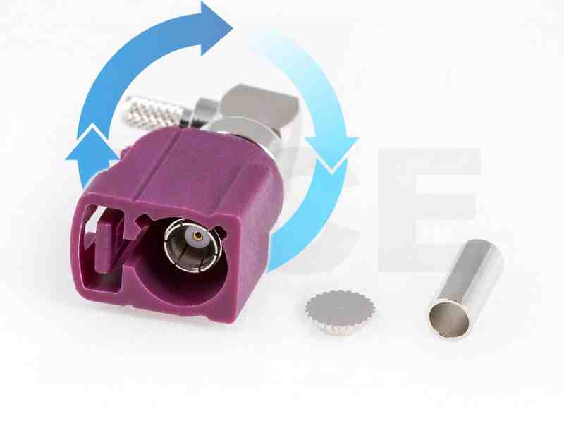 FAKRA Winkel-Buchse für RG 174, drehbar, Code D, Bordeaux