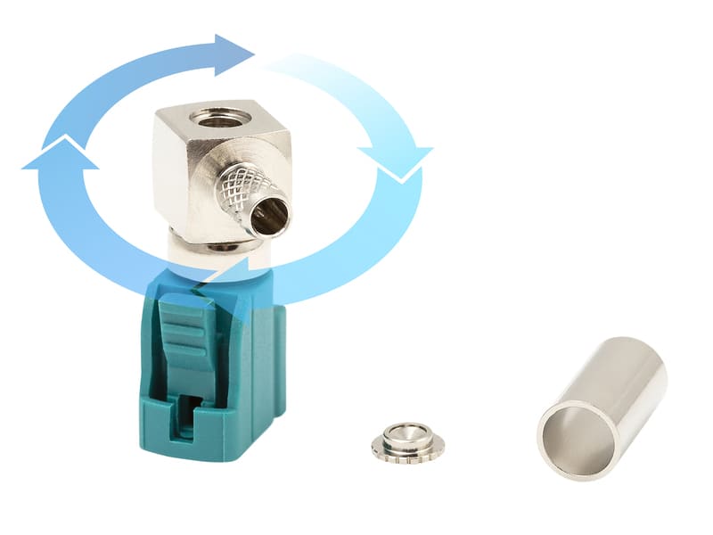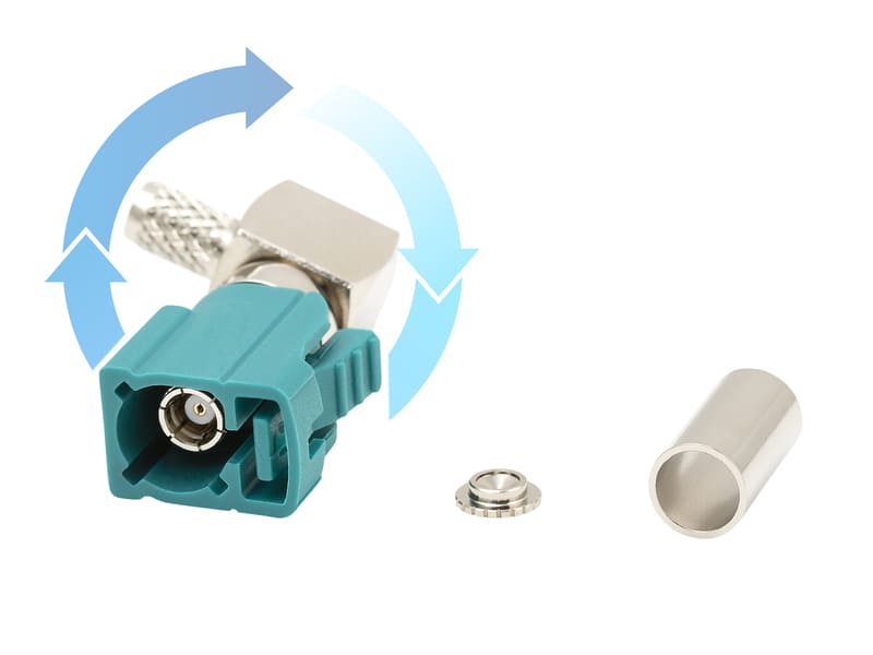 FAKRA Winkel-Buchse für RG 223, drehbar, Code Z, Wasserblau