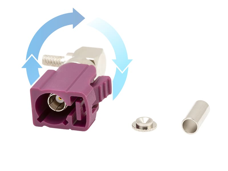 FAKRA Winkel-Buchse für CLF 200, drehbar, Code D, Bordeaux