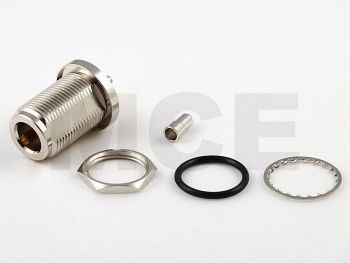 SMA Einbau Kabelbuchse Crimp für RG 142, 223, 400, Hex 11, Dichtring