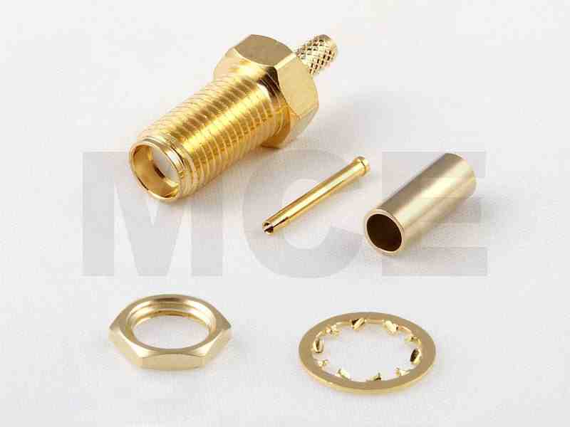 SMA Einbau Kabelbuchse für RG 174 / 188 / 316, Hex 8, Vergoldet, Crimp