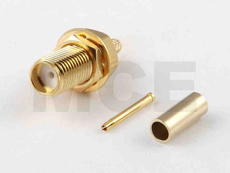 SMA Einbau Kabelbuchse für RG 178 / 196, Hex 8, Vergoldet, Crimp
