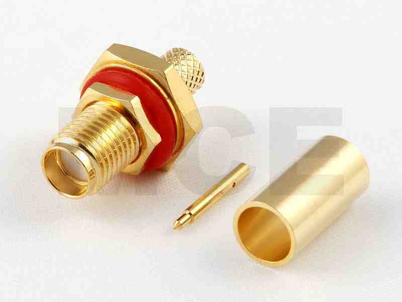 RP SMA Bulkhead for RG 58, Hex 11, O-Ring, Crimp