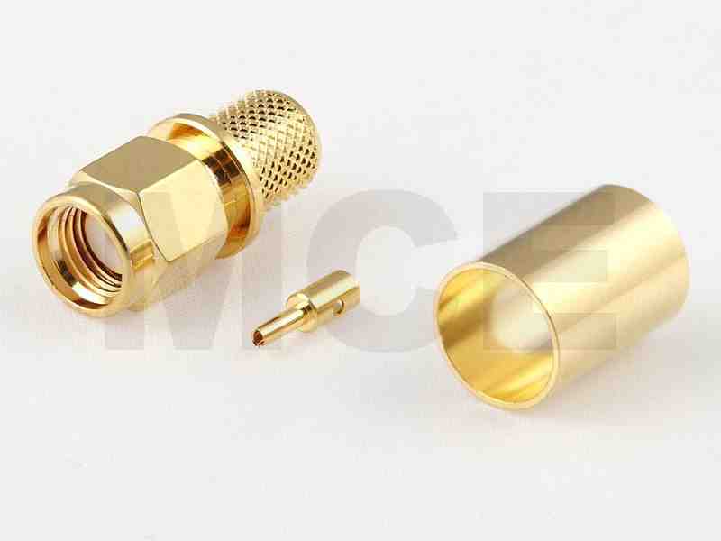 RP SMA Plug gold plated for Aircell 7, H 2007, Crimp/Crimp